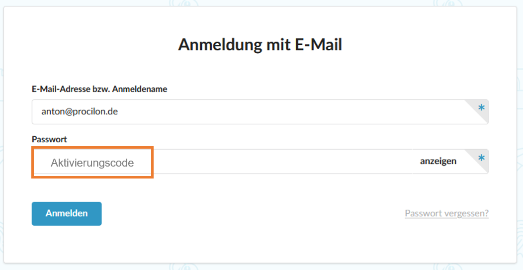 Nach Bestätigung Ihrer E-Mail-Adresse erhalten Sie einen Aktivierungscode zum Zurücksetzen Ihres Passwortes.