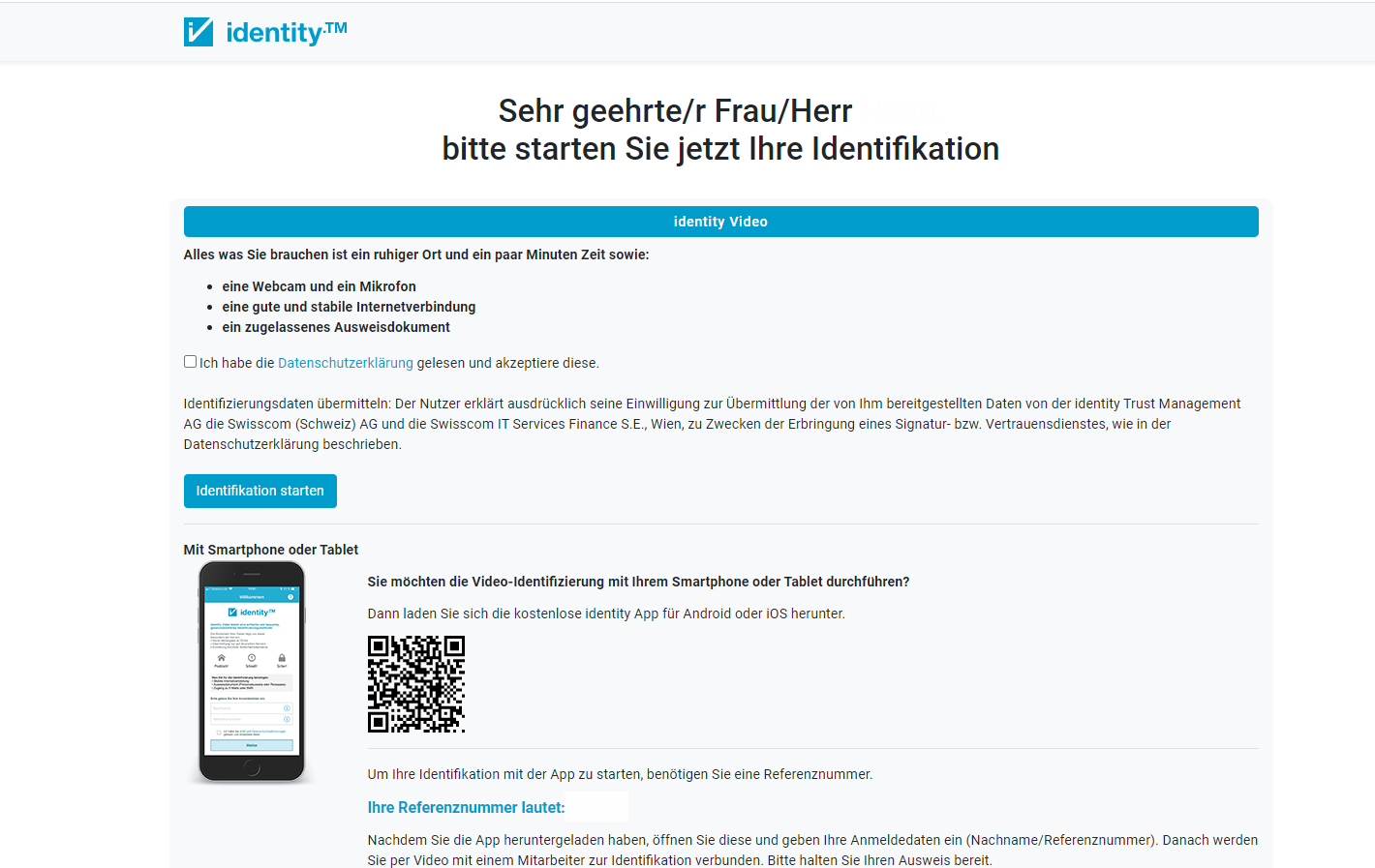 Sie haben die Möglichkeit sich über eine App (RA-App der Swisscom) oder über den Browser zu identifizieren.