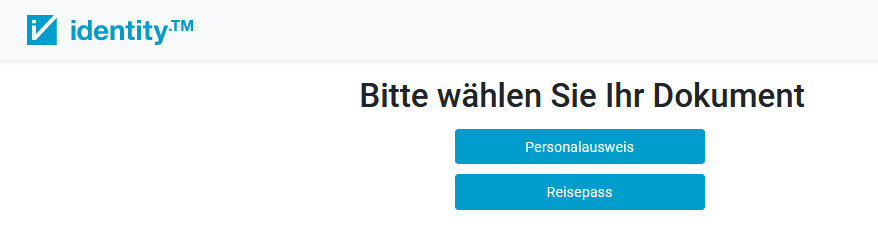 Im ersten Schritt werden Sie aufgefordert, die Art des Identifizierungsdokumentes (Personalausweis oder Pass) zu wählen.