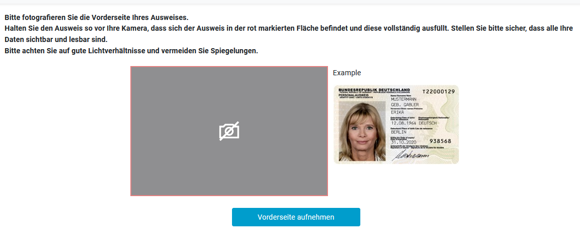 Anschließend werden Sie gebeten, Ihr Ausweisdokument mit Vorder- und Rückseite zu fotografieren.