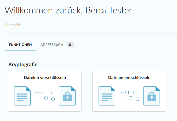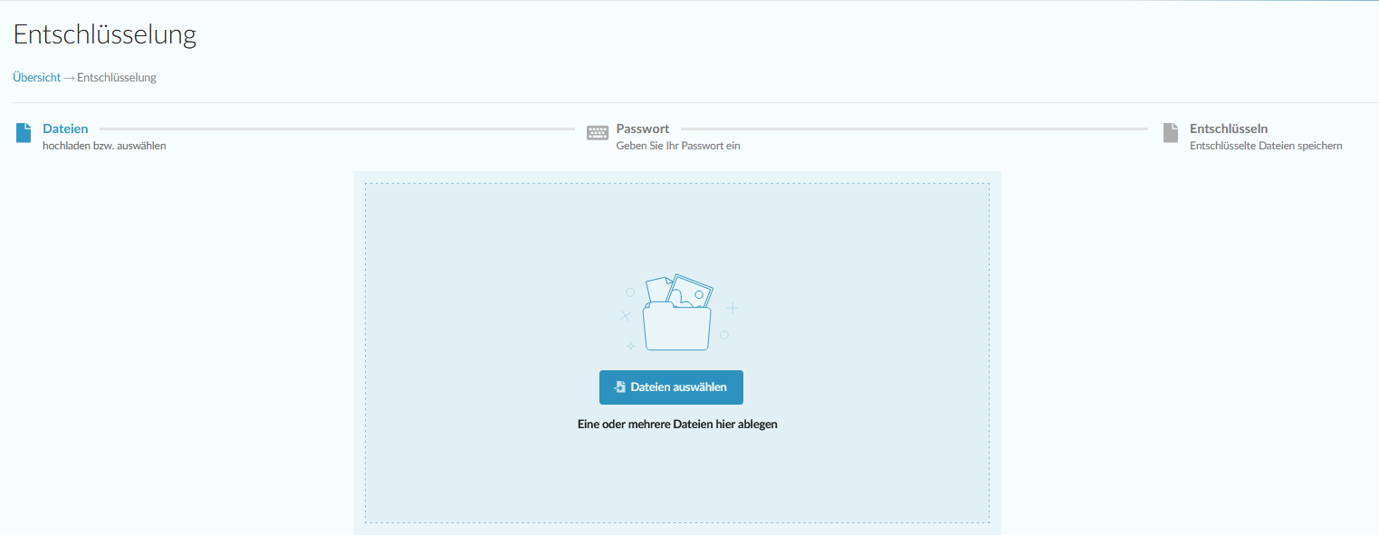 Wählen Sie im Dashboard die Kachel "Dateien entschlüsseln".
