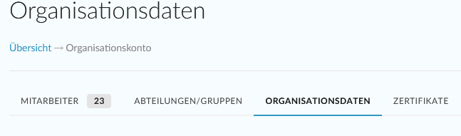 Die Stammdaten Ihrer Organisation finden Sie im Organisationskonto unter dem Reiter 'Organisationsdaten'. Dort können Sie die Stammdaten Ihres Unternehmens, wie Firmenname, Anschrift, Rechnungsadresse und weitere Kontaktdetails eingeben. Hier haben Sie außerdem die Möglichkeit, eine Nachrichten-Signatur für E-Mails zu erstellen und Mail-Domains anzulegen.