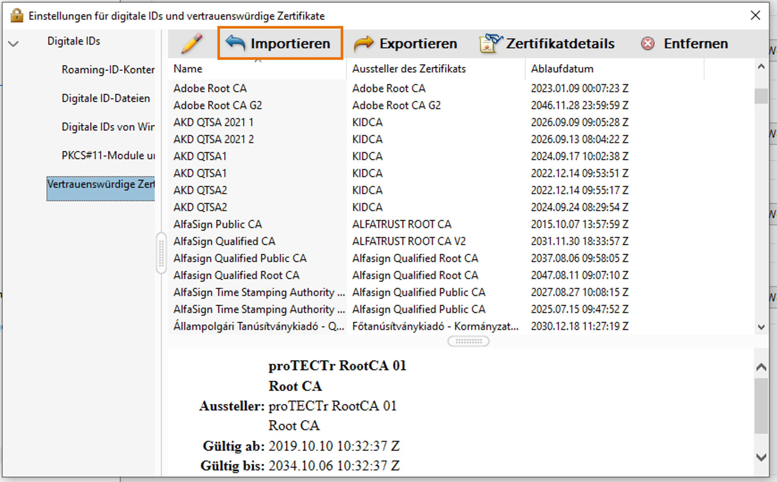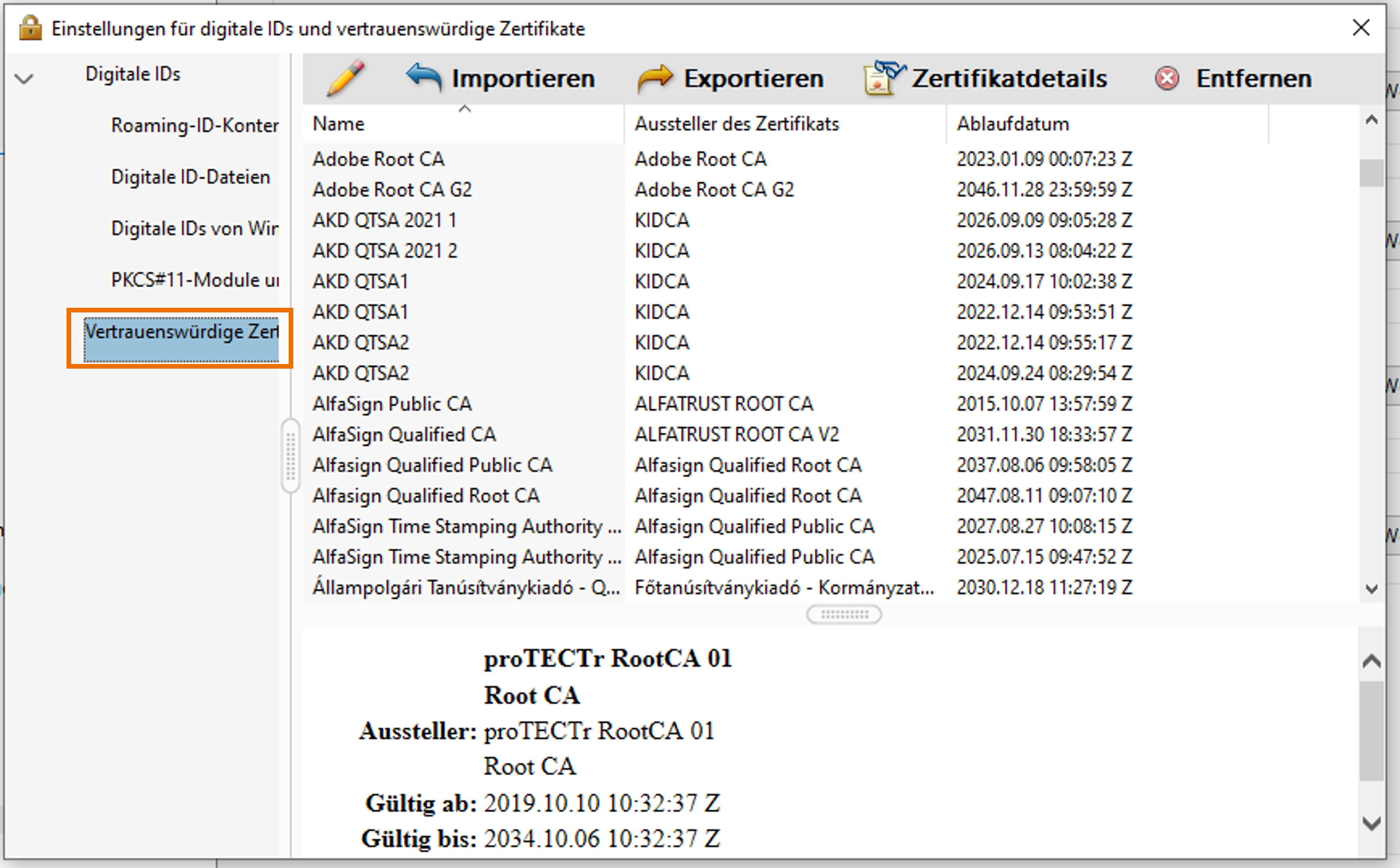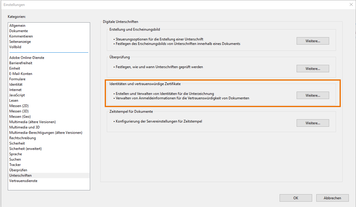 Beispiel: Zertifikatsverwaltung im Adobe Acrobat Reader DC