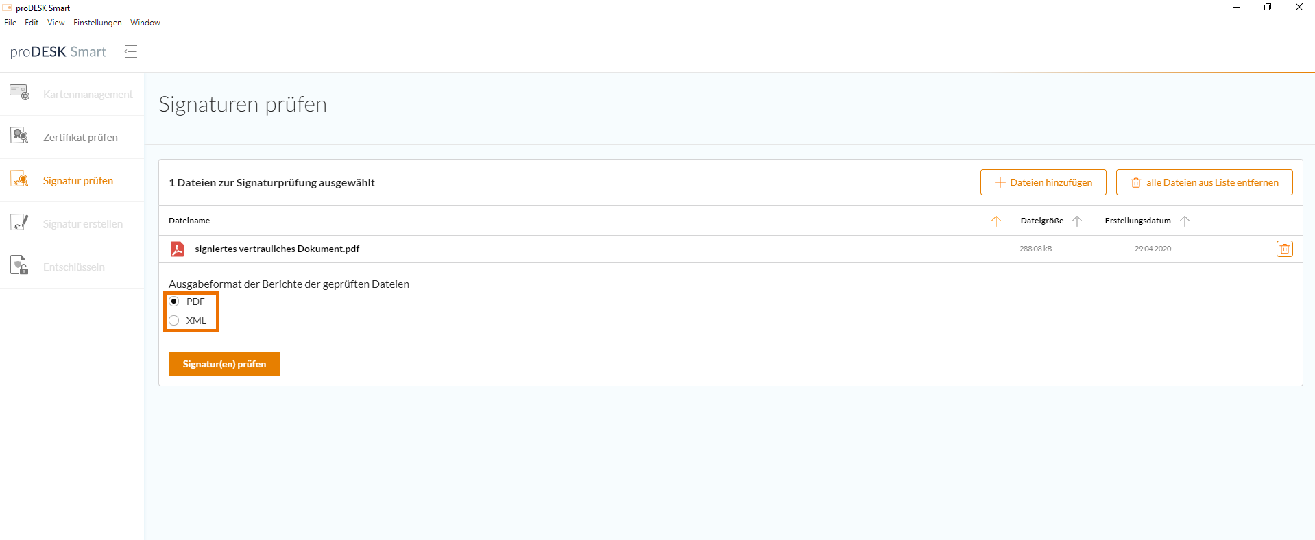 Signierte Dokumente prüfen