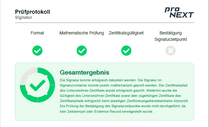 Mit dem Klick auf die Unterschrift kann der Validierungsstatus der Unterschrift abgerufen werden.
