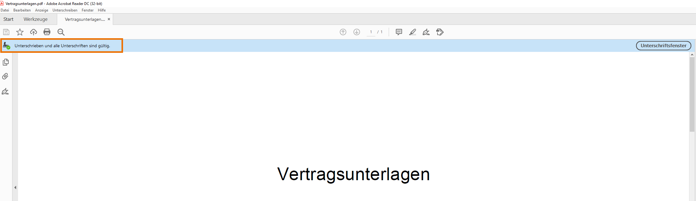 Wird nun ein PDF-Dokument mit den Acrobat Reader geöffnet, erfolgt eine automatische Signaturprüfung und das Ergebnis wird direkt mit dem Dokument angezeigt.