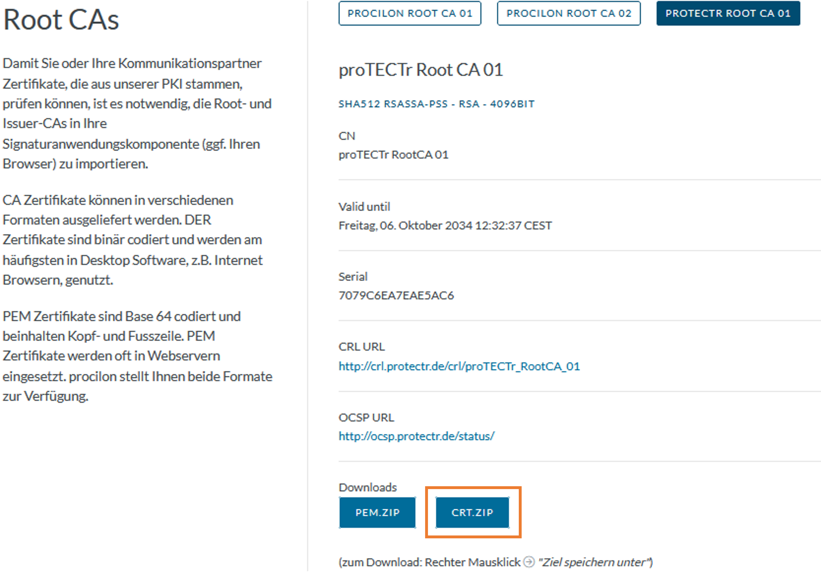 Hier können Sie das proTECTr Root-Zertifikat herunterladen.